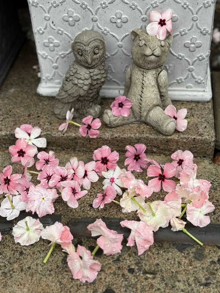夜中に大雨になり朝にはお花が沢山落ちていました😮💨💦