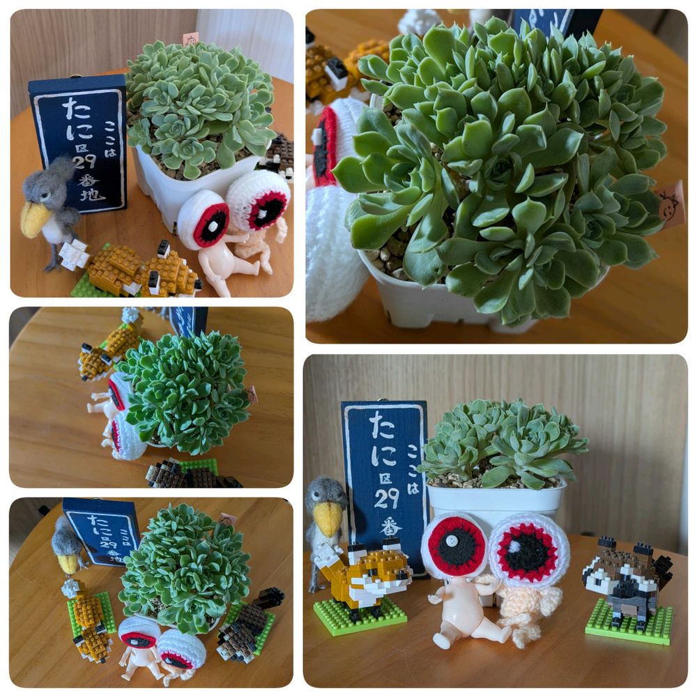 あらまぁーー誰の助けも借りずにできたぞぉーーやっぱり多肉ちゃんにはハリネズミ🦔がよく似合うはず〜〜ってオヤジさまと記念撮影〜〜