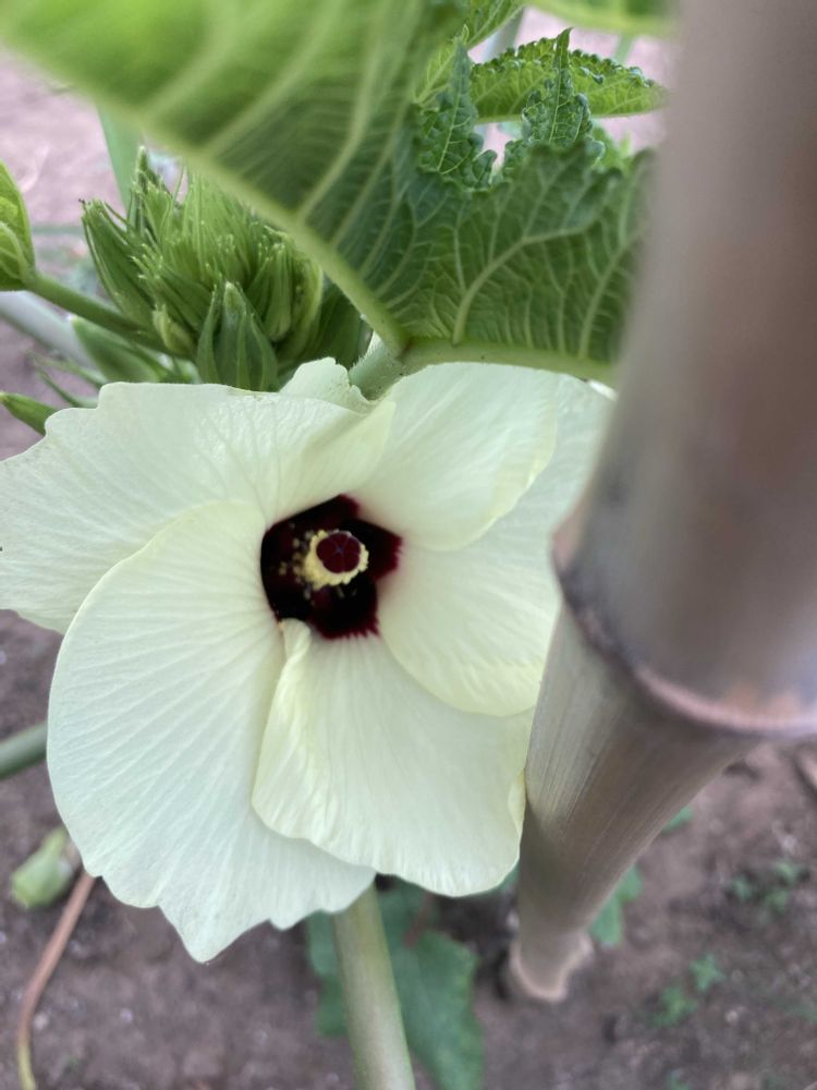 野菜の花とは思えないオクラの花野菜畑が華やかになりますよね🧡🤍💚✨