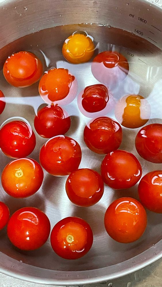 ②毎年恒例凍らせておいたミニトマトダイブ💦