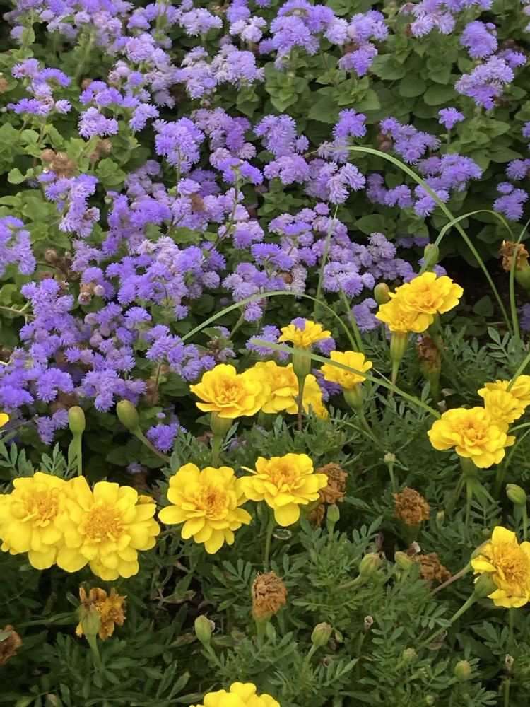 暑すぎないから?綺麗なアゲラタムとマリーゴールド💜💛