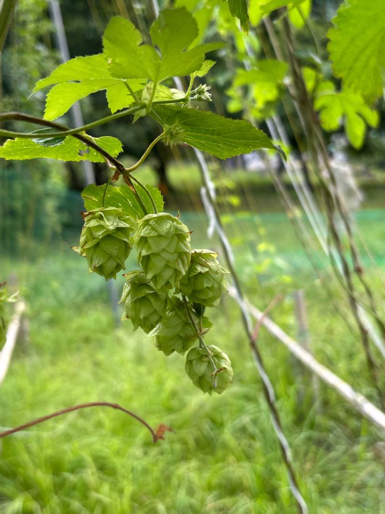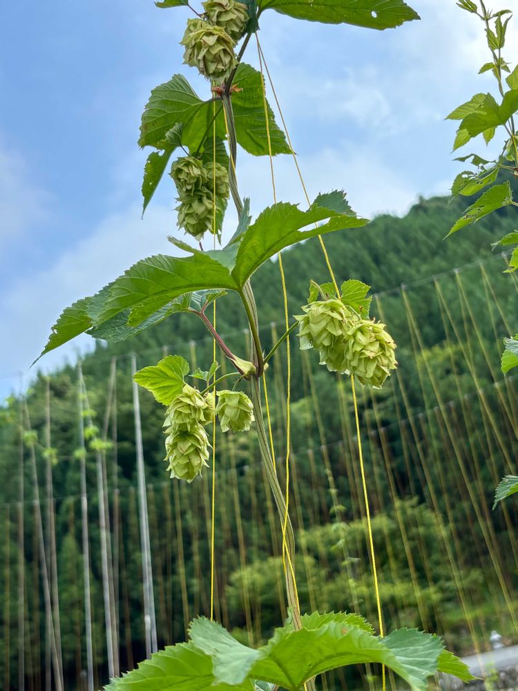 御岳の畑で育てているホップ