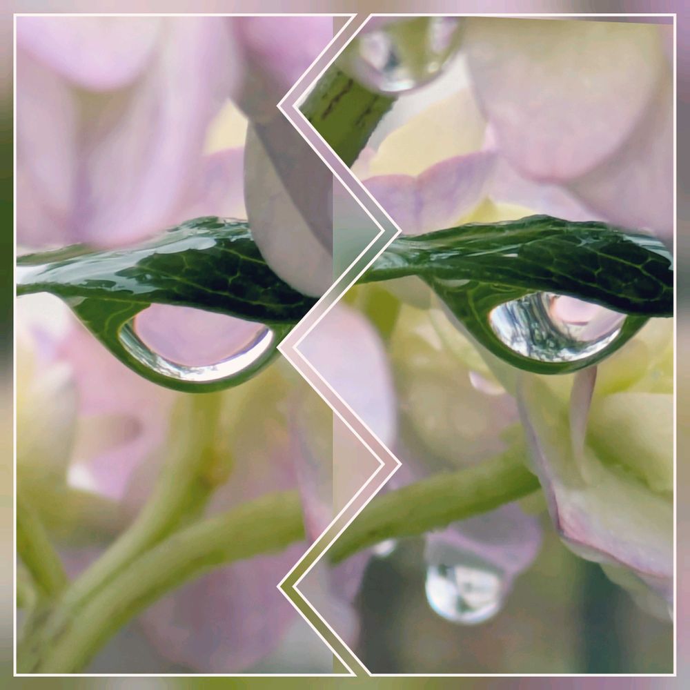 左右で、雨粒の中の世界の違いを感じて頂けると嬉しいです♬♫