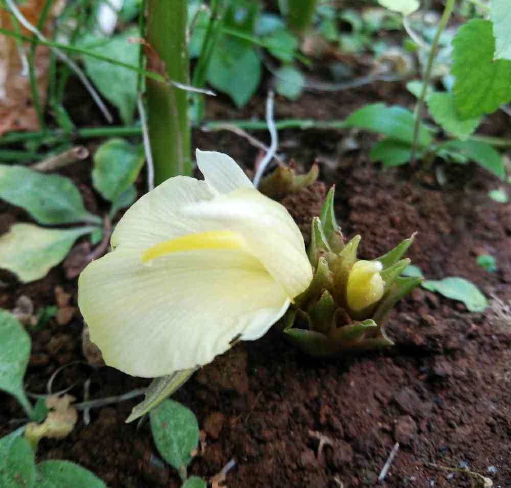 裏庭で茗荷の花が咲きました、淡い黄色が涼しげです