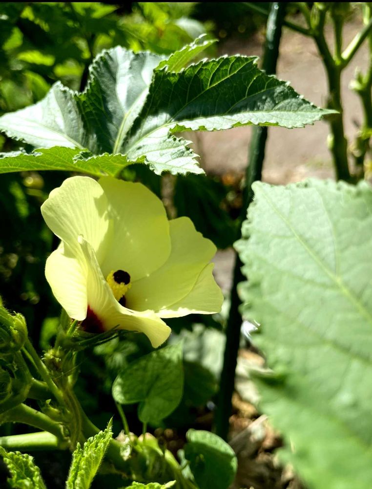 オクラの花って可愛のよね😄💚我が家もオクラ作ってるけど小さくて中々大きくならないのよ😫暑すぎるのかなあ😅