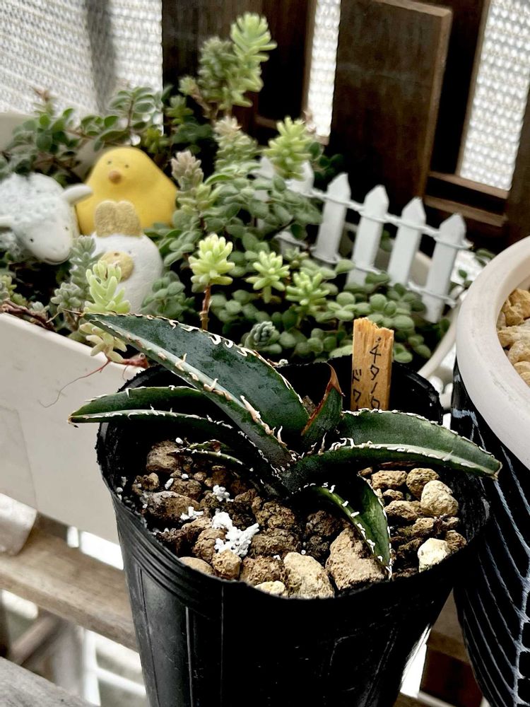 頭が分かれていたので2つの鉢に植え替えて、その一つはとても小さくて頼りないのに子株が育っています💦