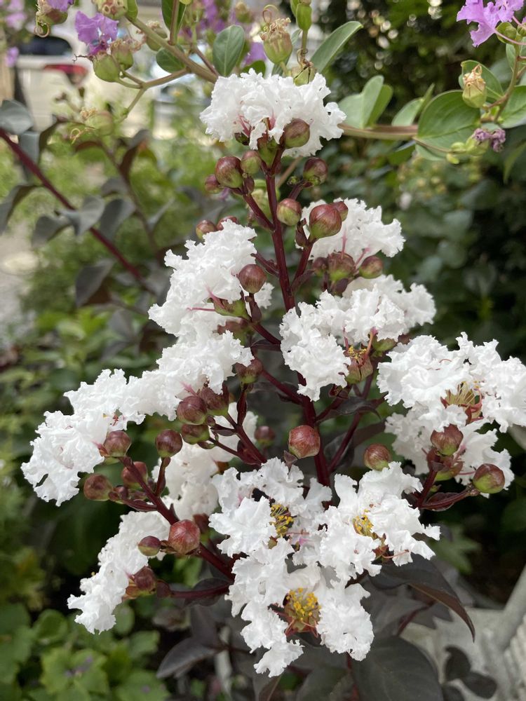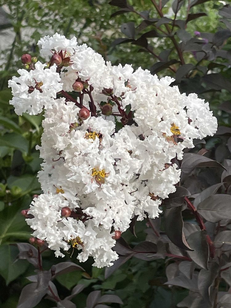黒葉に白色のお花が咲くサルスベリさん🤍✨