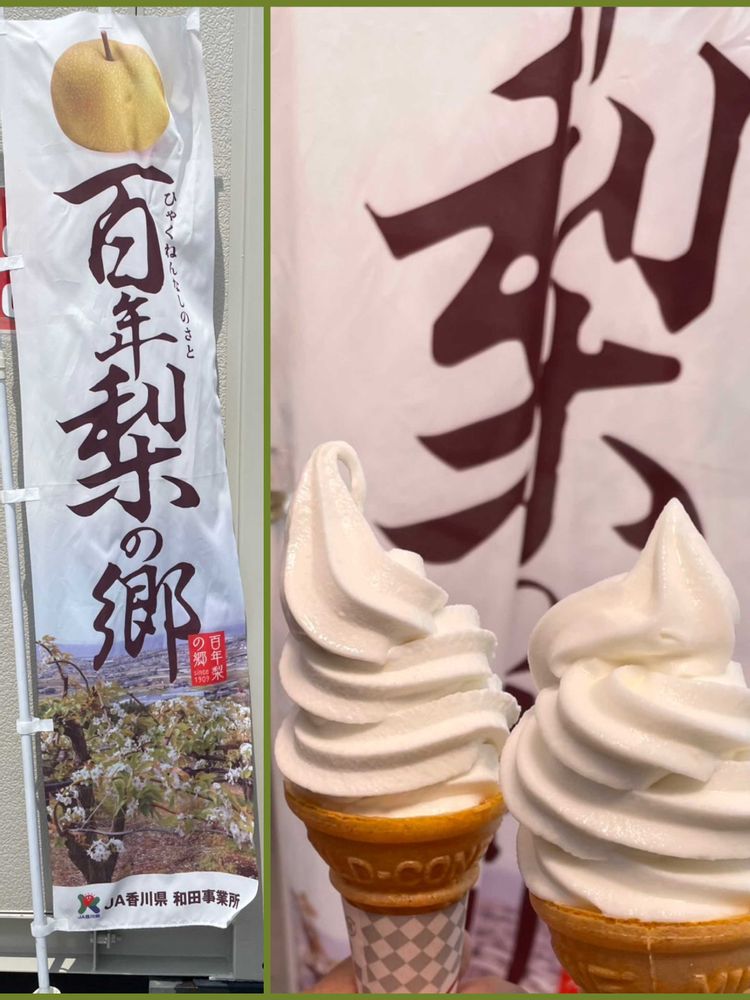 香川県豊南地区で梨農家の36名が23haの畑で栽培しておられるそうな。本日販売予定の梨は既に完売していて、買えなかったのがとても残念でした〜😢