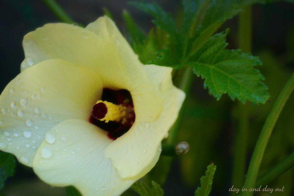 雨上がりにオクラの花 💛