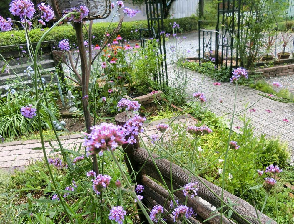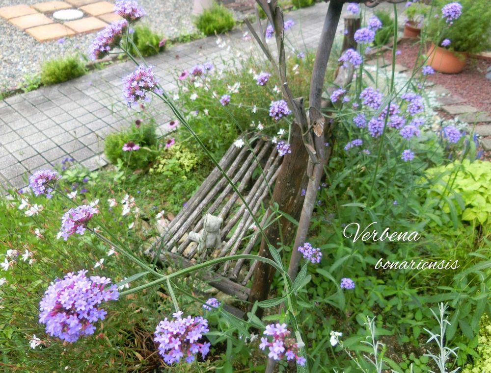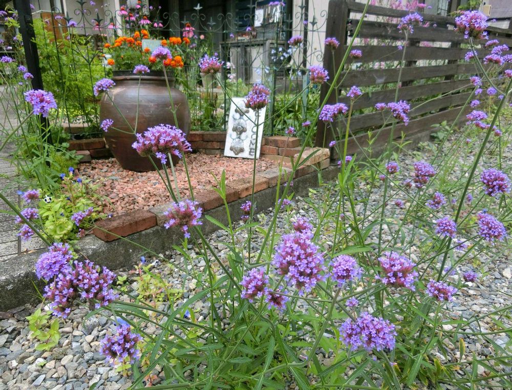 今年は三尺バーベナがこぼれ種で庭中に咲いています💜