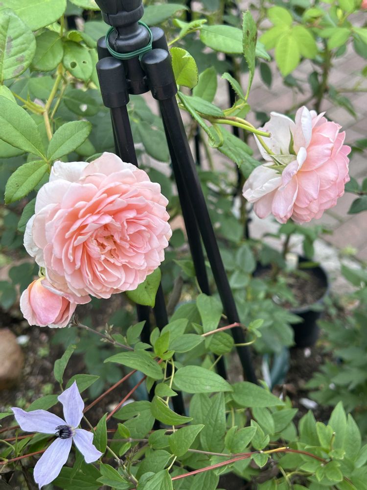 すぐ隣りには小さめのつるバラや塀があり、株元は直射日光は当たらない環境です