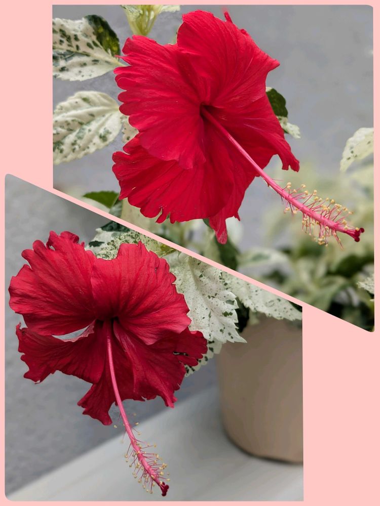 ④斑入りハイビスカス🌺さん❣️今日も2つ咲いたよ~✨(*^^*)