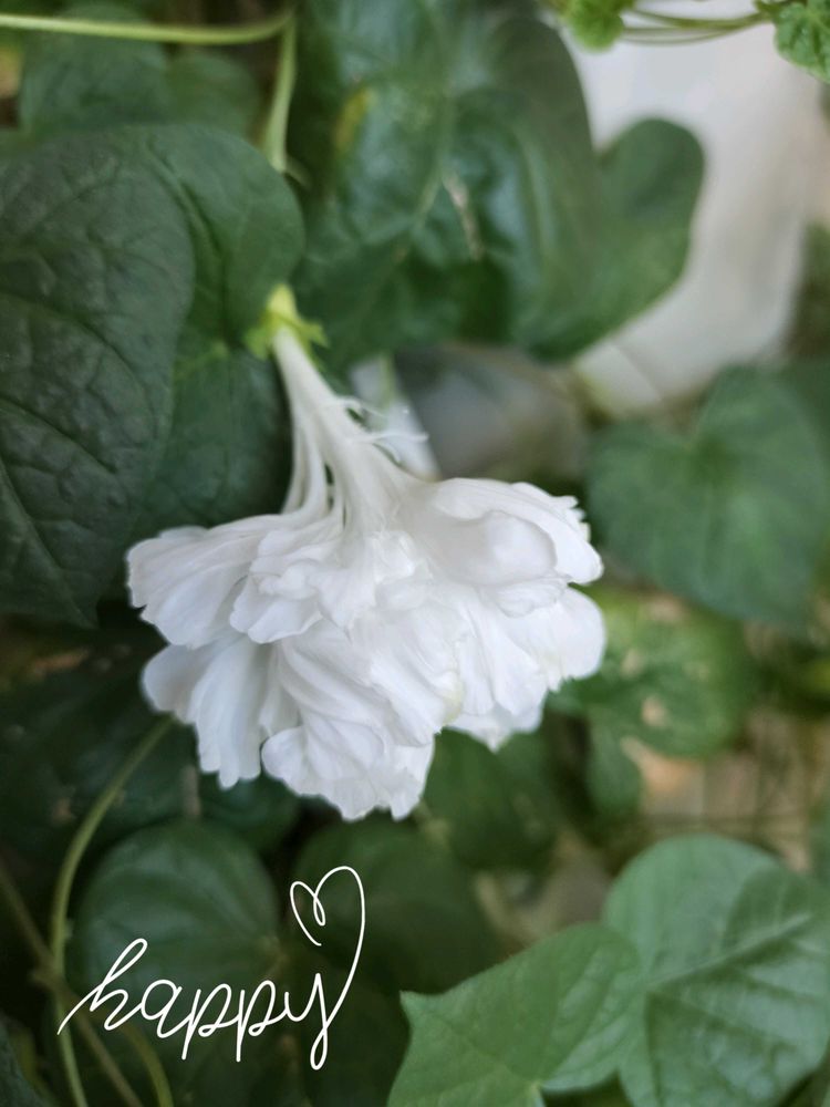 2枚目~今朝ベランダに出たらふんわり八重咲き朝顔スプリットペタルが咲いていました😍🤍お昼頃には萎んでしまうので、朝見ないとね😆💦