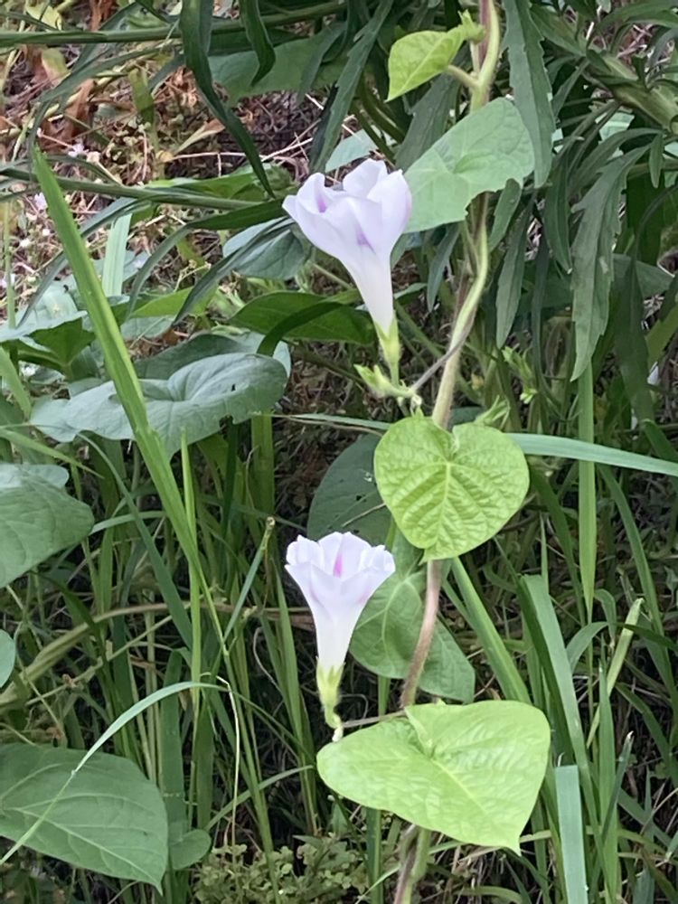 空き地に群生している西洋朝顔「ミルキーウェイ」。