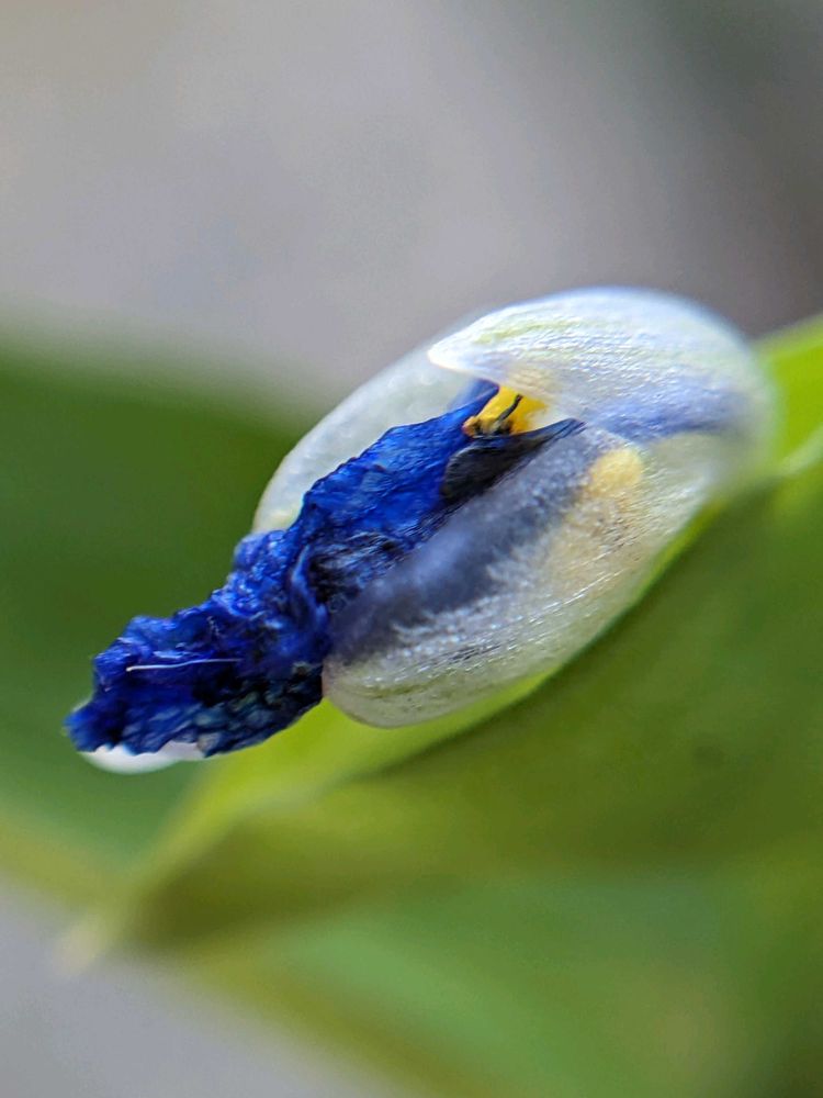 一日花のツユクサが咲き終わり、花が苞葉に戻る途中だと思います。