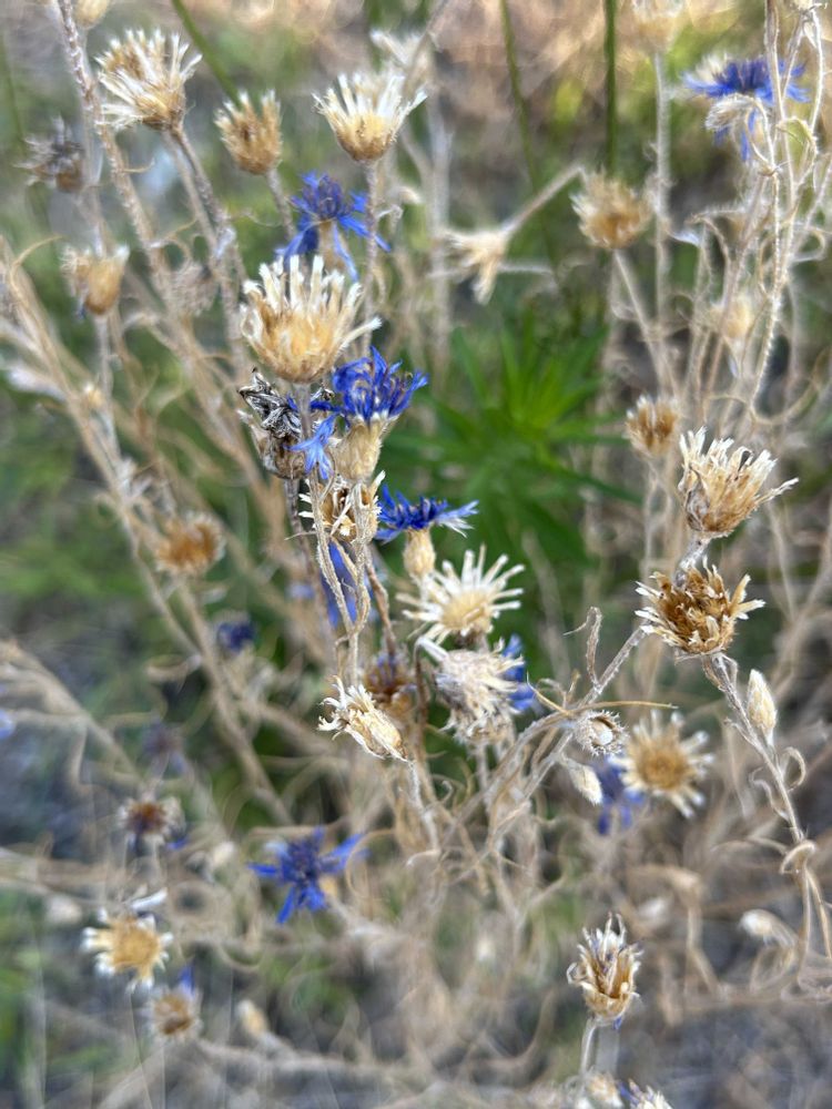 矢車菊の、まだちょっとでも咲いてるからね感とアンティークな枯れ感とのミックスが渋くていい♪