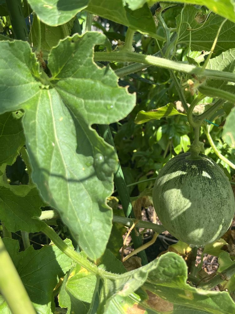メロンの苗って、大事にし過ぎると失敗するのかな?今年はきゅうりの隣に1つだけそのまま植えて、水やり以外は放任してました。今、網目が出てきたのと、網目が出そうなのが2つ、元気に育ってます😍🍈
