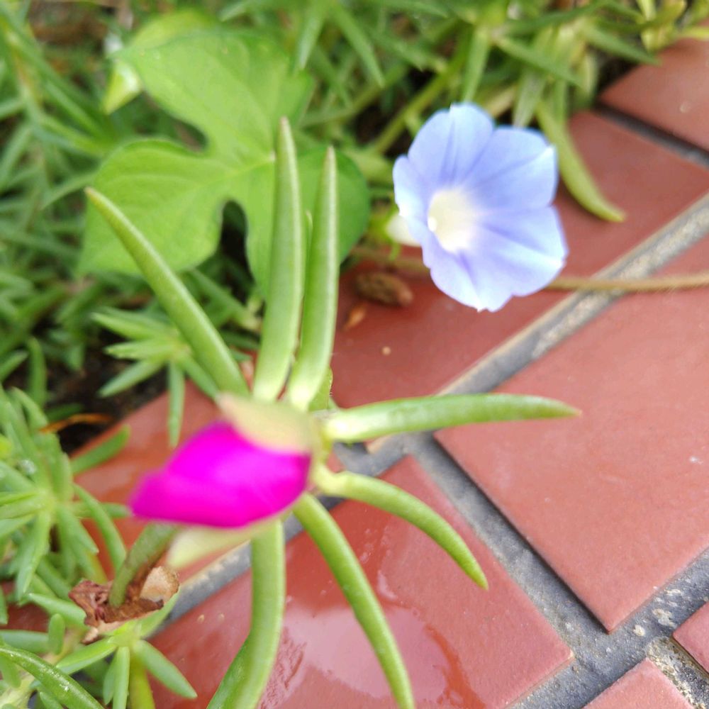 バラもステキだけどマツバボタンとアサガオのツーショットすてき💕💕💕