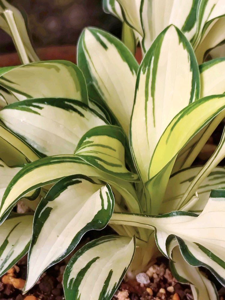 薄くグリーンがかった新しい葉っぱが中心からも出てきて、だんたん白くなっていきます。