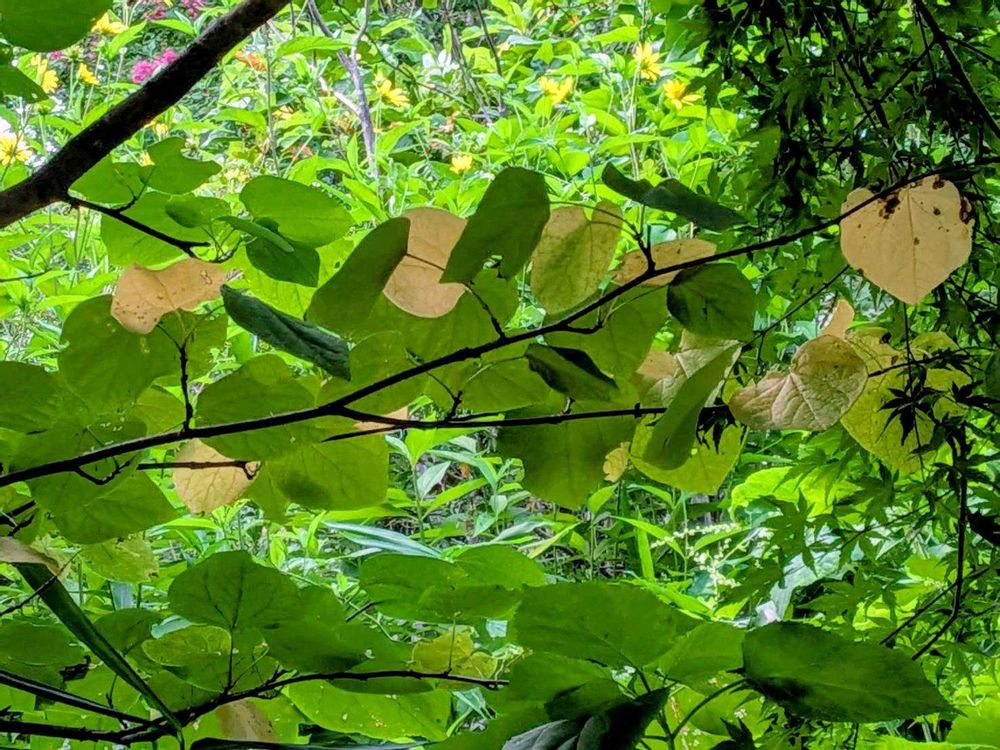庭の奥のマルバノキの♡が紅葉黄葉して
