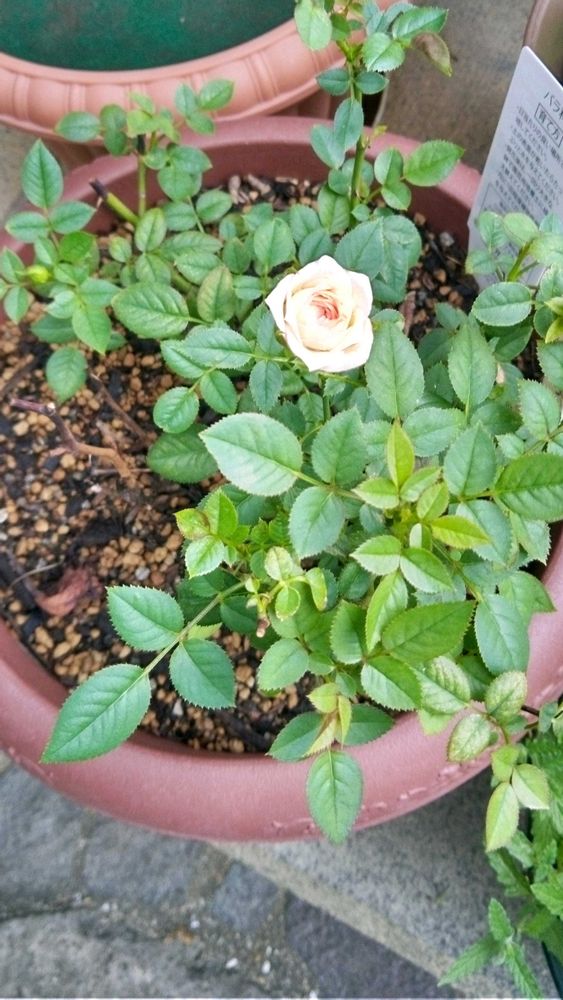 「カルーセル コルダーナ」(ミニバラ)が1輪だけ咲いています💖