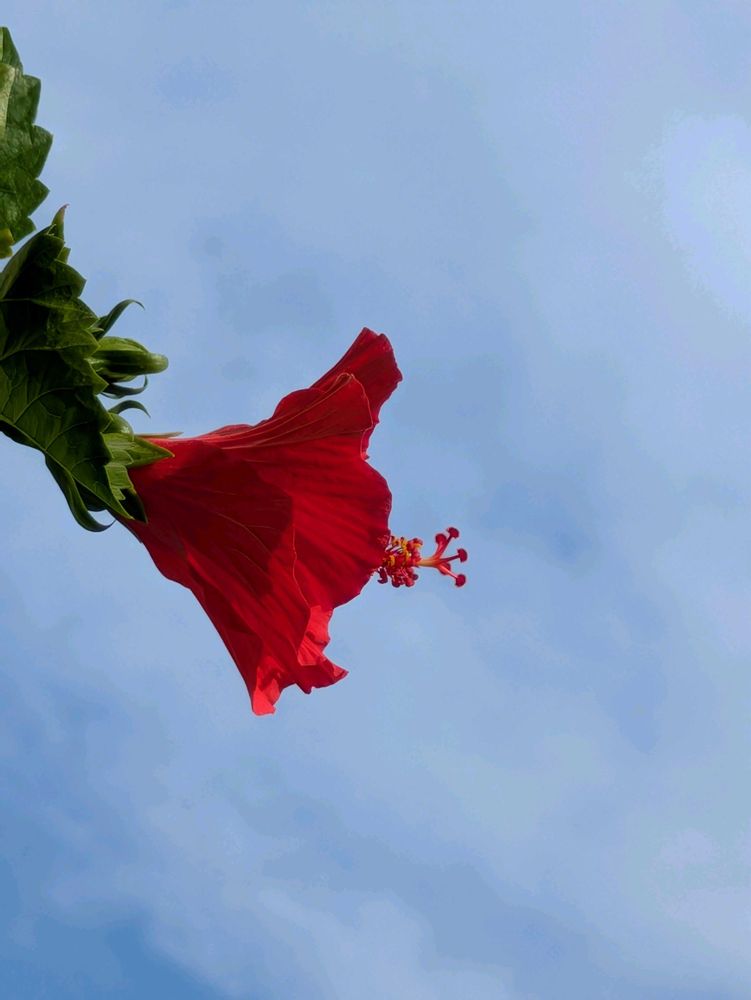 真っ赤なハイビスカス、お空に映えていますね🌺