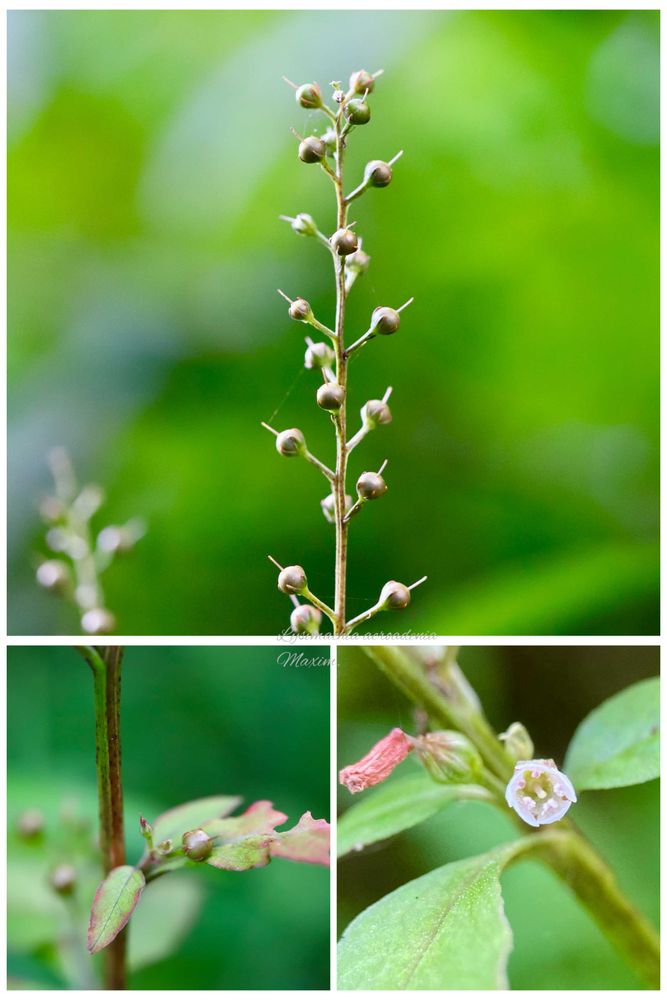 ・枝先に総状花序をつけ、10-30個の小さな花をまばらにつける