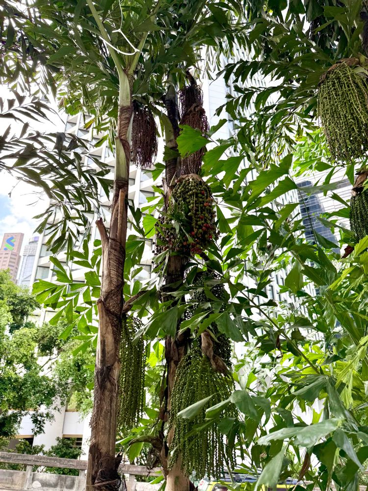 バス通り沿いに並ぶコモチクジャクヤシ🌴🌴🌴