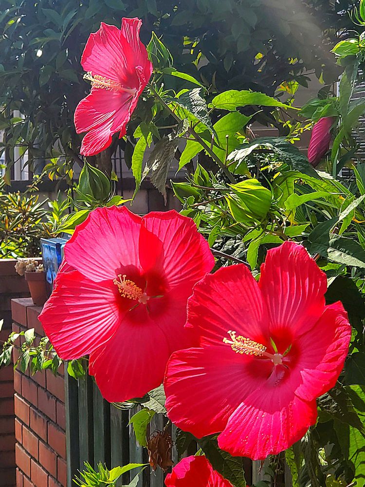 1枚目2枚目『今日のお花』ハイビスカス、3枚目タイタンビカス、4枚目5枚目ムクゲです😁🍀