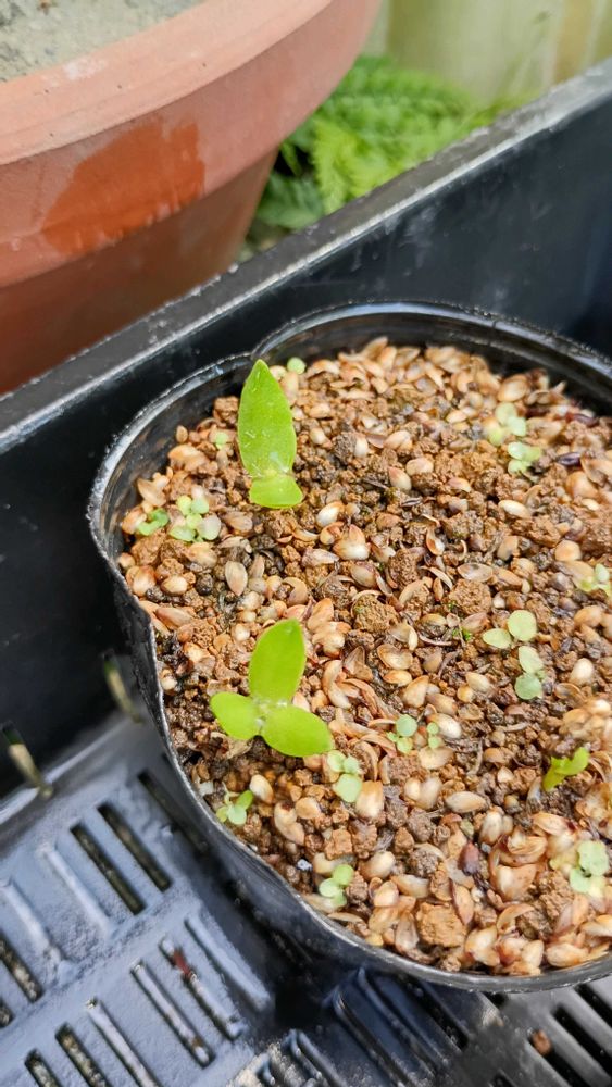 2024年3月22日に交配 2024年7月12日に結実した種を採取 2024年8月14日に種まき 2024年9月に発芽 その後、植え替えをして現在2025年7月に至る 今後の成長はアプリで記録 花が咲くまで継続
