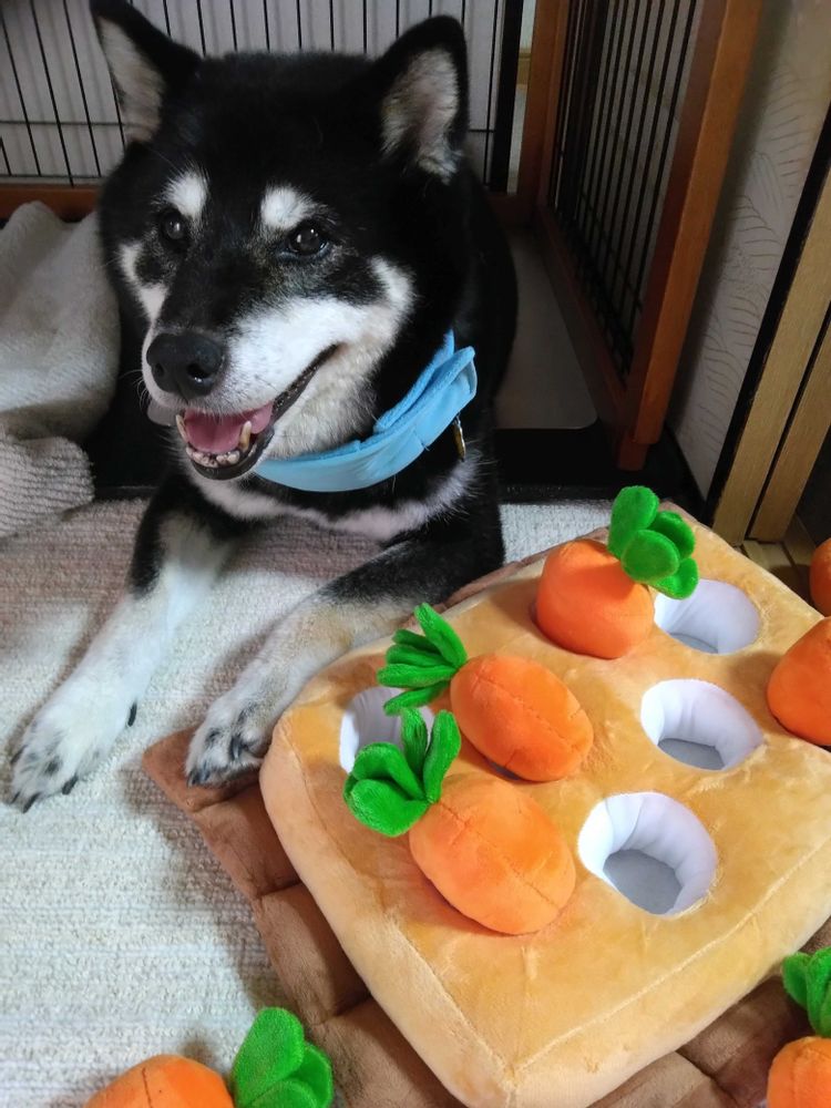 荒らしたあとなんです🐾😅。おやつを中に入れ、にんじんをぎゅっと植える。にんじん畑できあがり🤭。