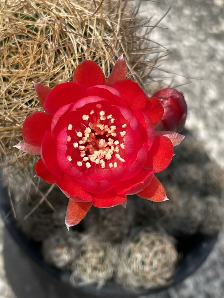 まるで鳥の巣❤🌵自体も素敵だし、花は真っ赤でゴージャスだし😍✨