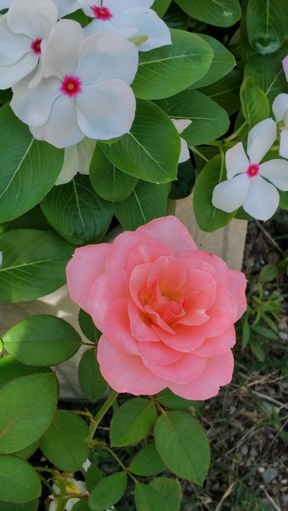 3本あってそれぞれ違う花が咲いているような🥰🩷🩷🩷日日草と一緒に📸
