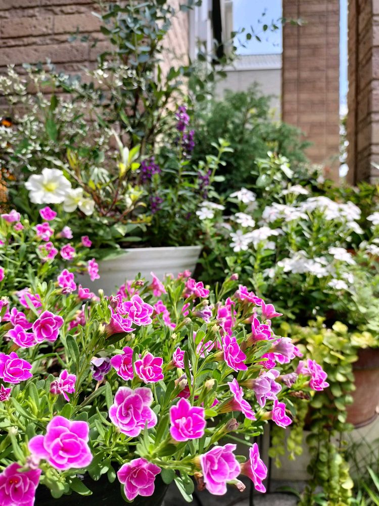 今年の夏の玄関まわりは華やかに保てています🤗💕水やりは一苦労🤣夏の鉢植えは数を抑えないとなと反省