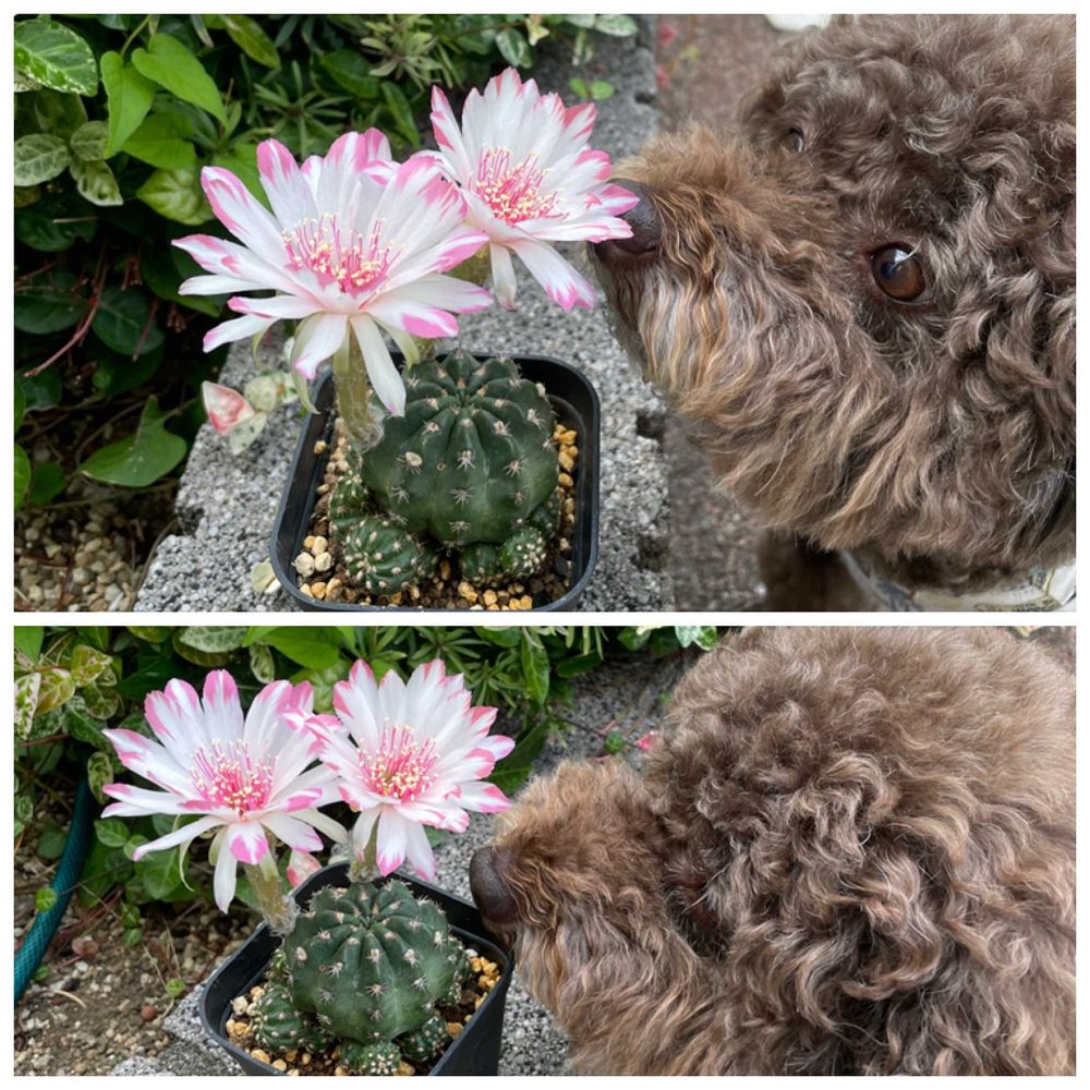 ワンコには良い香りがするのだろうか?😄エキノプシス 蝉衣🌵綺麗な花です🐶💕🌸