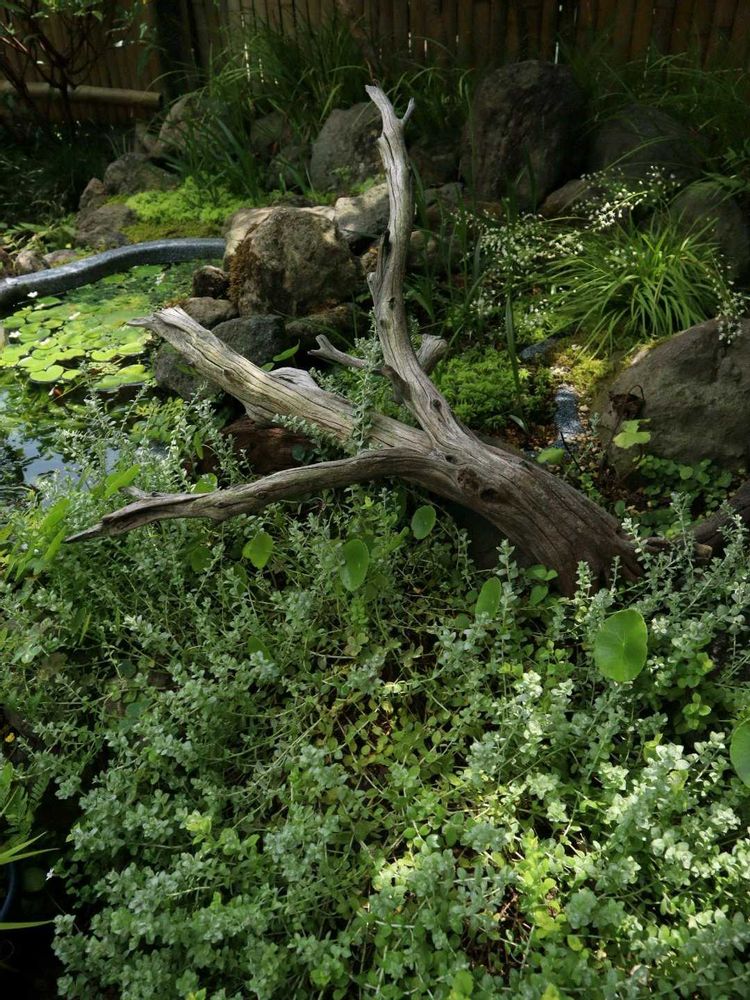 流木って見てるだけでなんか時の流れを感じます……って今シーズン初めからココに寝かしてみたばっかなのに💦 何年もこの流木を使用していましたがコレが正解かな(笑) ③凄いナイスポジションからアズマシロカネソウが生えて来てます(笑)