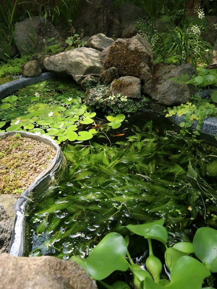 水の流れるプラ池とプラ舟のビオトープ