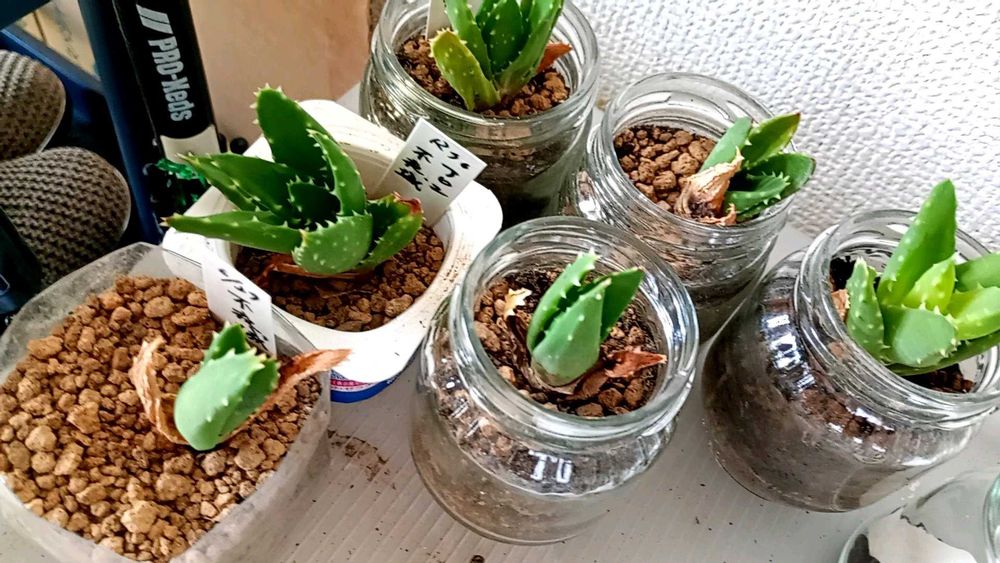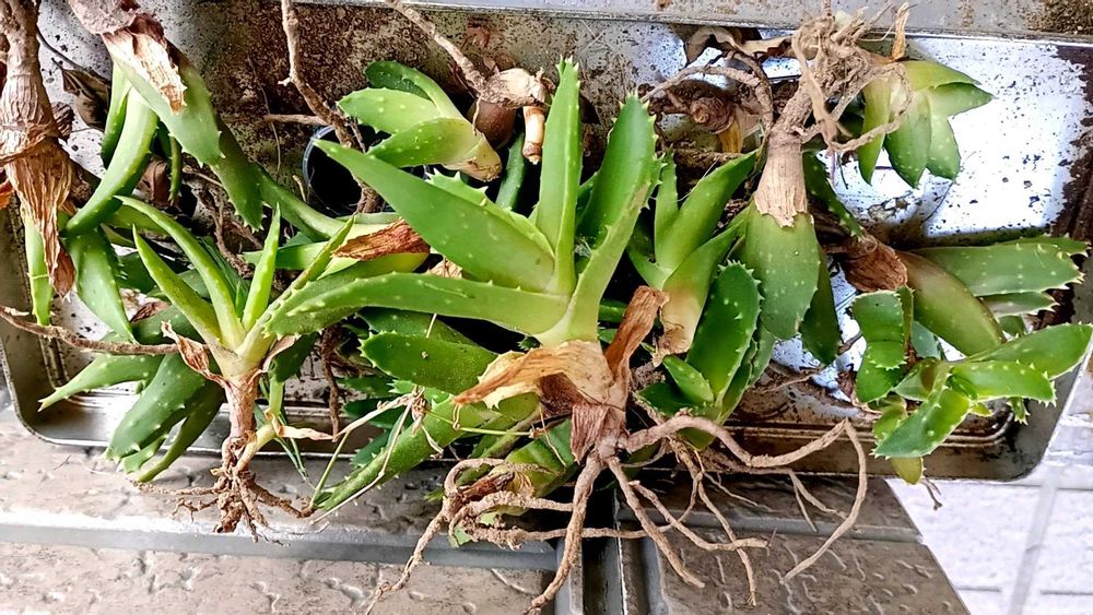 アロエ不夜城の子株が,6月に続き、今回実家の庭からも大量にでできたので、採取して移植をしてみました🌿😆🌿🌿🌿