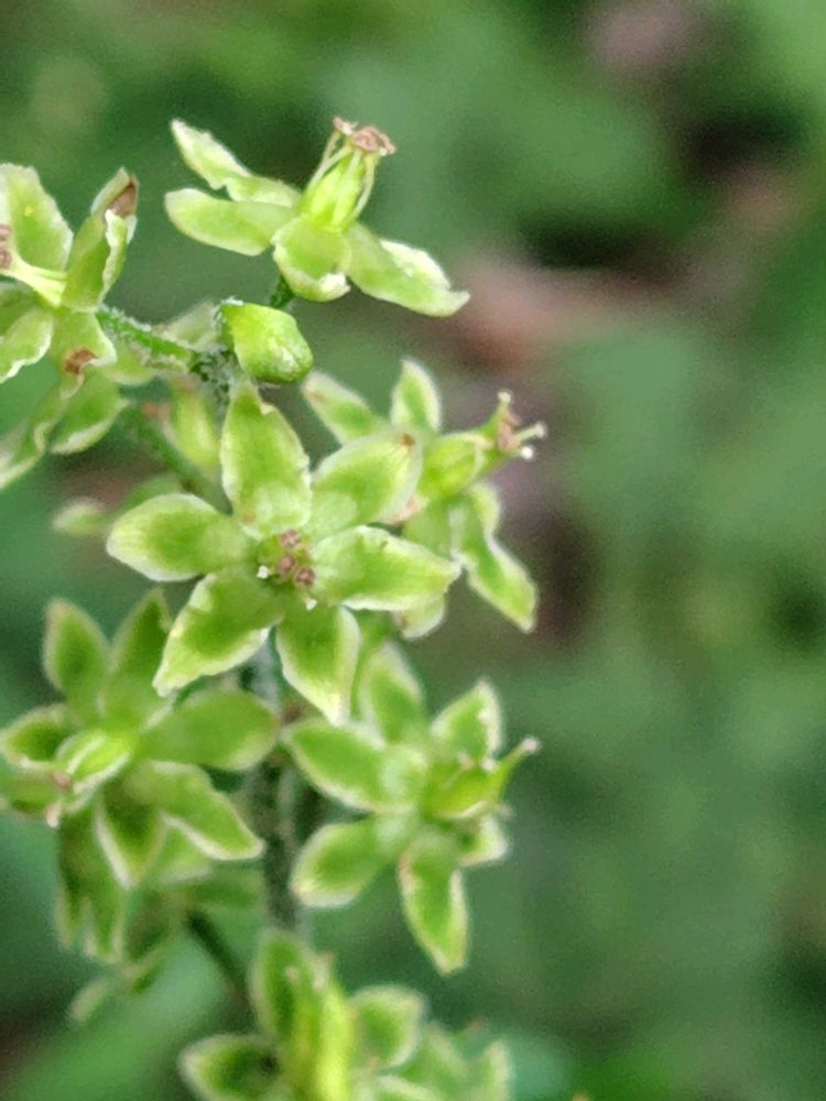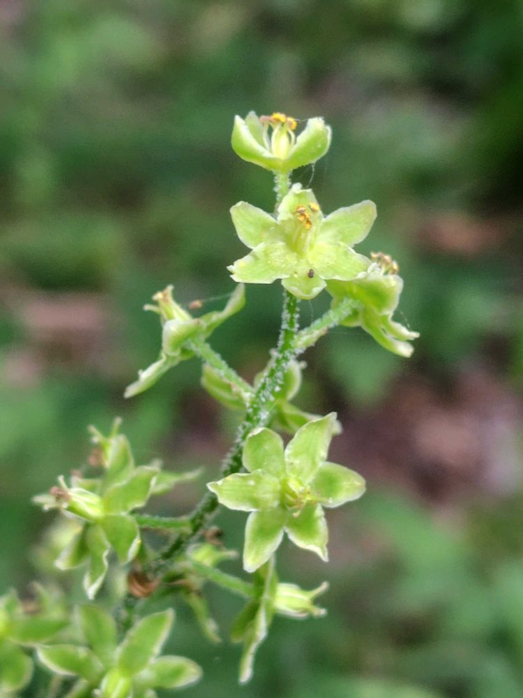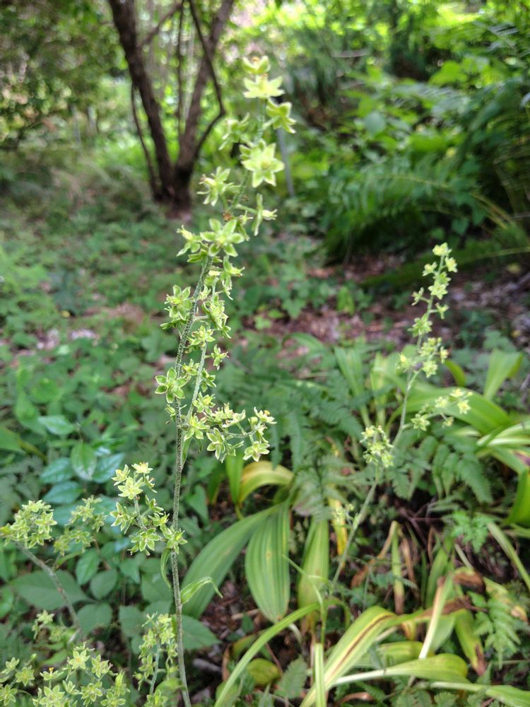 茎頂に円錐花序を出し、黄緑色の花を付ける。花には雄花と両性花がある。