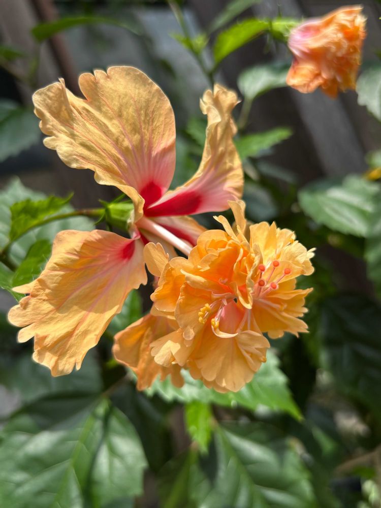 華やかなオレンジ色のフリフリハイビスカス✨🧡🧡🧡