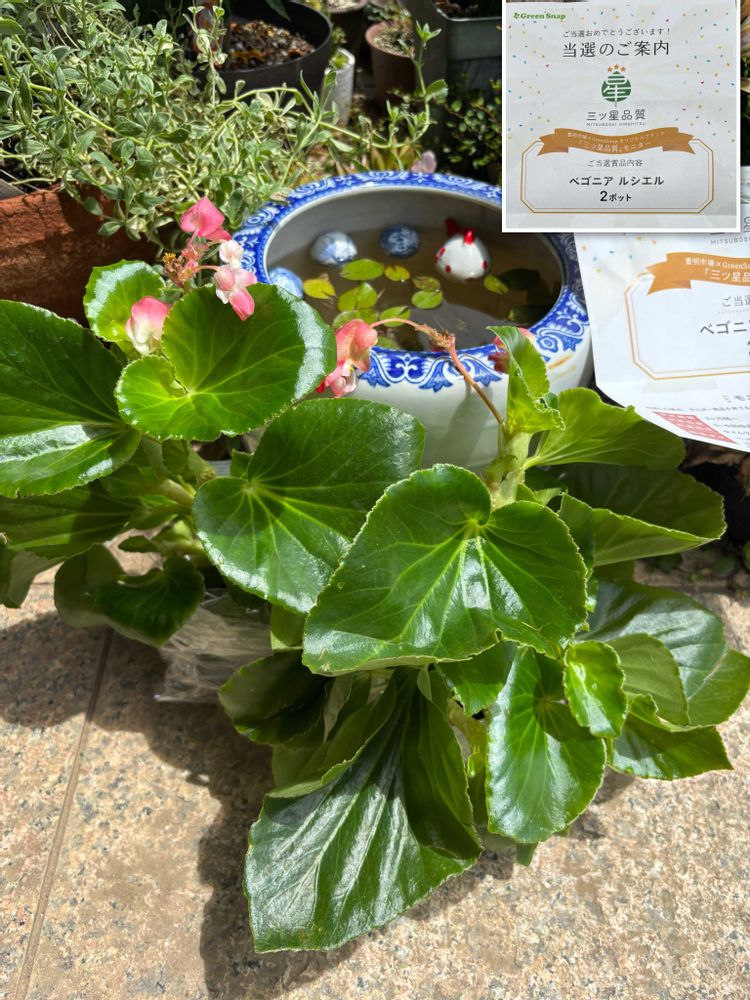 久しぶりに応募したモニター ベゴニアルシエルに選んでいただきましたお色はピンク色🩷箱を破らないと出せないくらい立派な葉の元気な苗です🪴どの鉢に植えようか迷っています