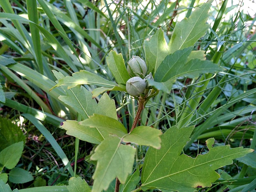 ムクゲ……ポコンッ…、と、蕾みたいですね〜。