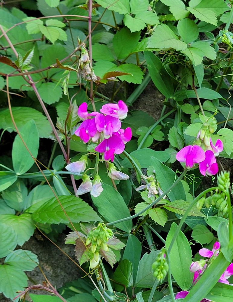 写真だと大きさがわかりませんがツル性でカラスノエンドウの10倍ぐらいの花です。