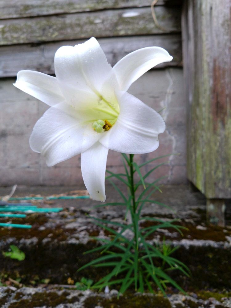 こぼれ種から溝に生えてます🥀タカサゴユリです