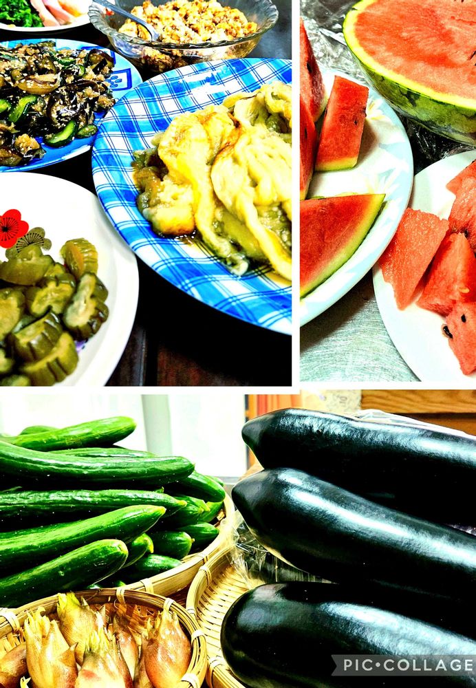 4️⃣ナス、キューリ、茗荷!頂いたら直ぐ調理👨🍳中々美味✌️