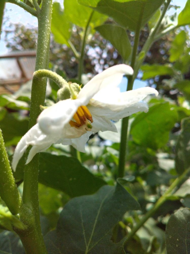 埼玉青大丸茄子の花、大きくて可愛いでしょ🎶青いナスが成るんです🍆