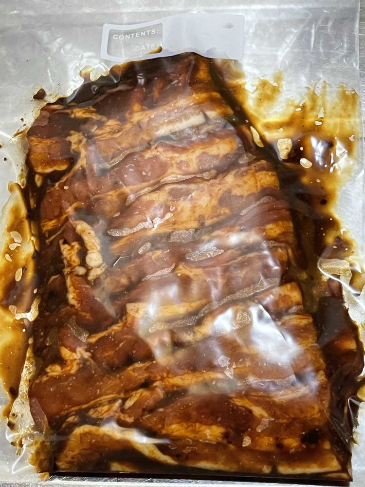 医者に出かけてくる前に味噌だれに漬けてたお肉を一枚だけ試し焼きしてみたけど...