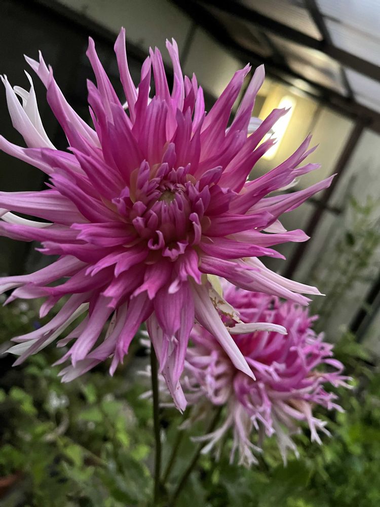 ❶ダリア 艶舞✨✨脇芽を摘みそびれてしまいましたが、開花のタイミングが被り良き良き🙆🏻♀️❷艶舞らしい花びらの乱れ具合が覗いてきました👌