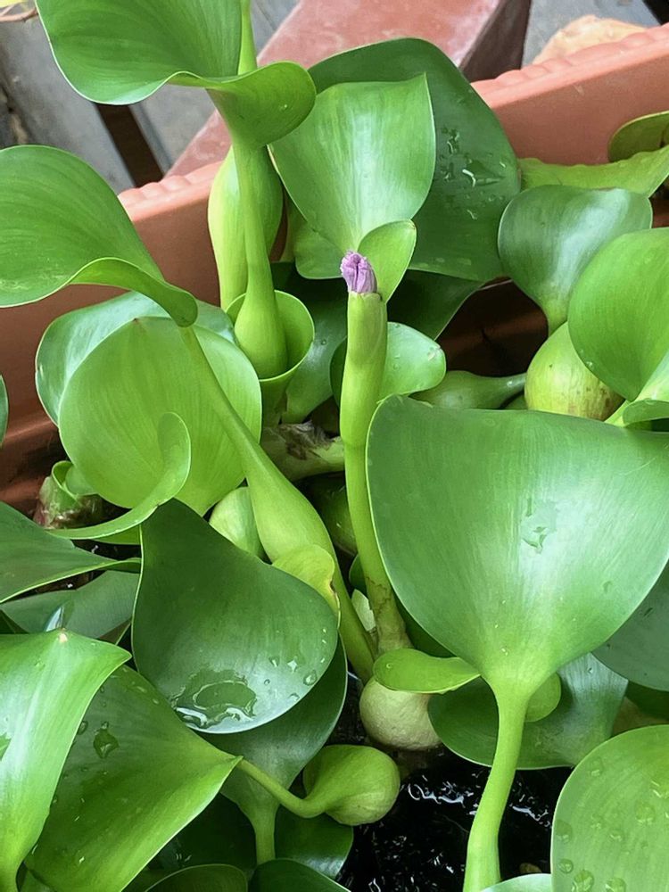ホテイアオイ,花が咲いてるのが無くて、葉っぱ🌿だけでもいいかと思ったら,紫の蕾があって,良かった😁