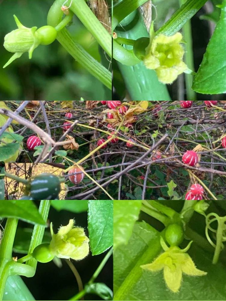 種から育てたオキナワスズメウリ、花と小さな実を発見💡